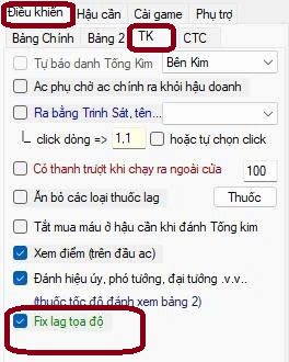 - hỗ trợ tham gia Tống Kim có thêm chức năng Fix Lag Vị Trí