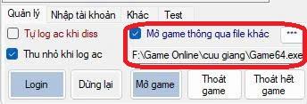 anh em sử dụng tính năng login tíchh vào dòng mở game thông qua file khác và chọn file game64.exe như hình hướng dẫn - Bỏ chế độ acc chính tự chạy ra khỏi hậu doanh để tránh tính trạng treo tống kim.